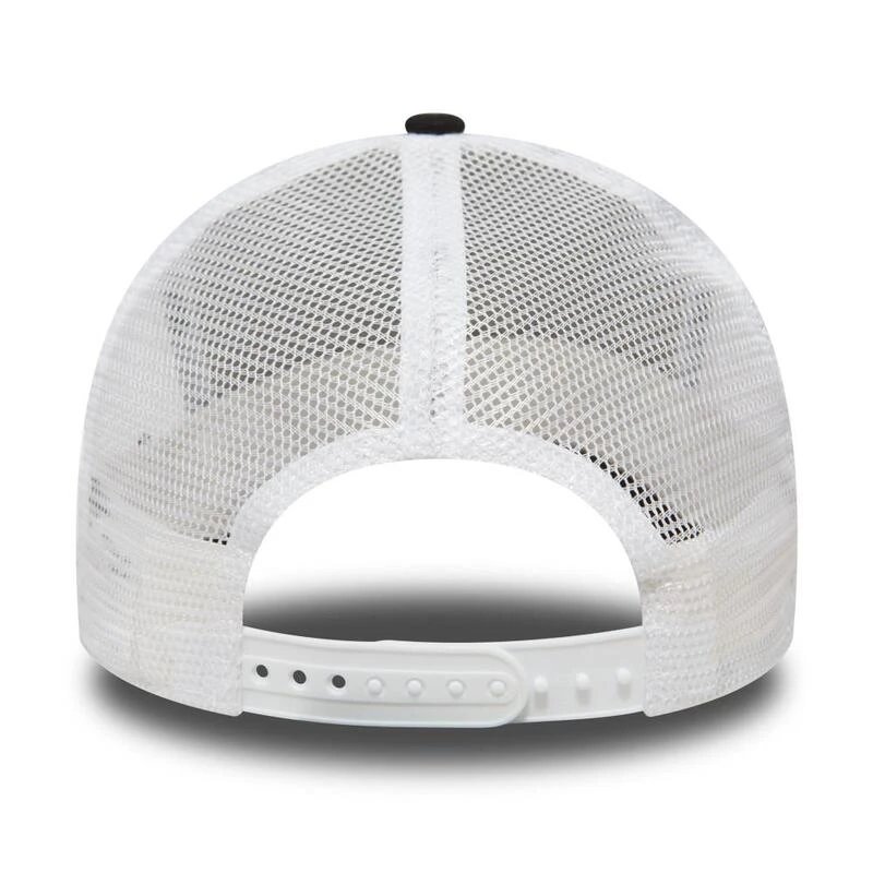 Team logo op voorzijde Geborduurde New Era vlag links Gestructureerde en getextureerde kroon Mesh panelen aan zijkanten en achterkant Klittenbandsluiting met team patch Gebogen vizier Meerdere panelen in acryl, katoen en polyester