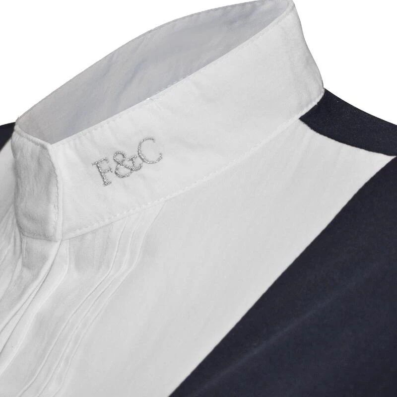 Damespolo van bi-materiaal die elegantie en comfort combineert voor uw wedstrijden. De elegantie van een geraffineerd wedstrijdshirt met zijn volledig geplooide voorkant. Het comfort van een zachte, lichte, comfortabele en ademende technische polo. Verborgen knoopsluiting. Geribbelde mouwranden. Zilveren F&C borduursel op de kraag (met magneetsluiting). Samenstelling : voorpand : 60% katoen 38% polyamide 2% elastische popeline. lijfje : 95% polyester 5% elastische jersey.