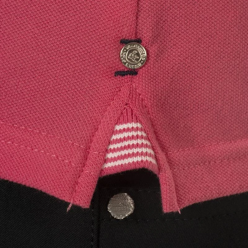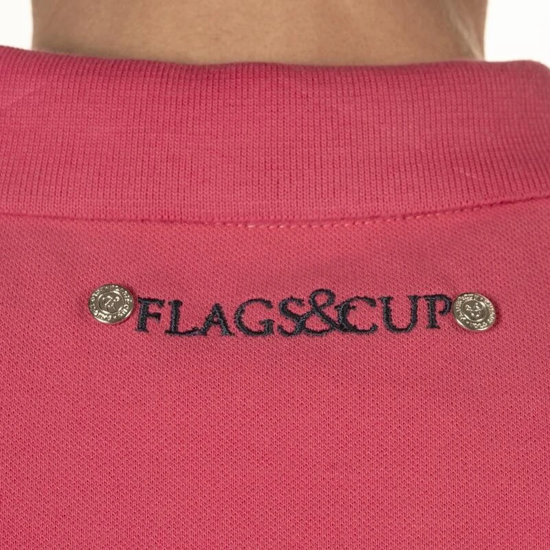 Zeer comfortabel poloshirt met korte mouwen van piqué-katoen met een moderne en vrouwelijke stijl. Groot 3D Flags&Cup borduursel op de borst met contrasterende zilveren opdruk. Korte mouwen met ton sur ton geribde afwerking. Metallic patch op PU-juk genaaid op rechtermouw. Geribde kraag met contrasterende gestreepte onderkant. 3-knoops sluiting met contrasterende geweven streep eronder. Zijsplitten met gestreepte rib. F&C metalen klinknagel en contrasterende stiksels op de rechterheup. Contrasterende nekband. Geborduurd Flags&Cup-logo en metalen klinknagels op de achterkant van de kraag. Samenstelling: 95% Piqué katoen 5% Spandex.FLAGS&CUP