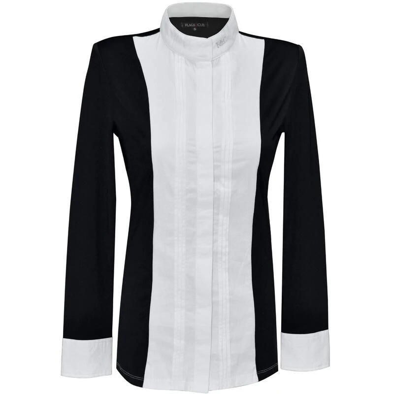 Damespolo van bi-materiaal die elegantie en comfort combineert voor uw wedstrijden. De elegantie van een geraffineerd wedstrijdshirt met zijn volledig geplooide voorkant. Het comfort van een zachte, lichte, comfortabele en ademende technische polo. Verborgen knoopsluiting. Manchetten. Zilveren F&C borduursel op kraag (magnetische sluiting). Samenstelling : voorpand : 60% katoen 38% polyamide 2% elastische popeline. lijfje : 95% polyester 5% elastische jersey.