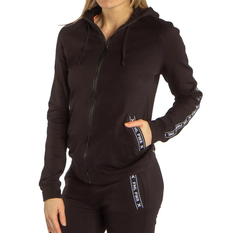 Dit comfortabele vest is niet alleen prettig om te dragen voor of na het sporten, maar ook nog eens superhip! Hij heeft twee steekzakken, een capuchon en elastische boorden aan de mouwen en onderkant. De hoge kraag houdt je altijd lekker warm. De zakken en mouwen zijn voorzien van een trendy bies. Tijd voor wat Female Power!